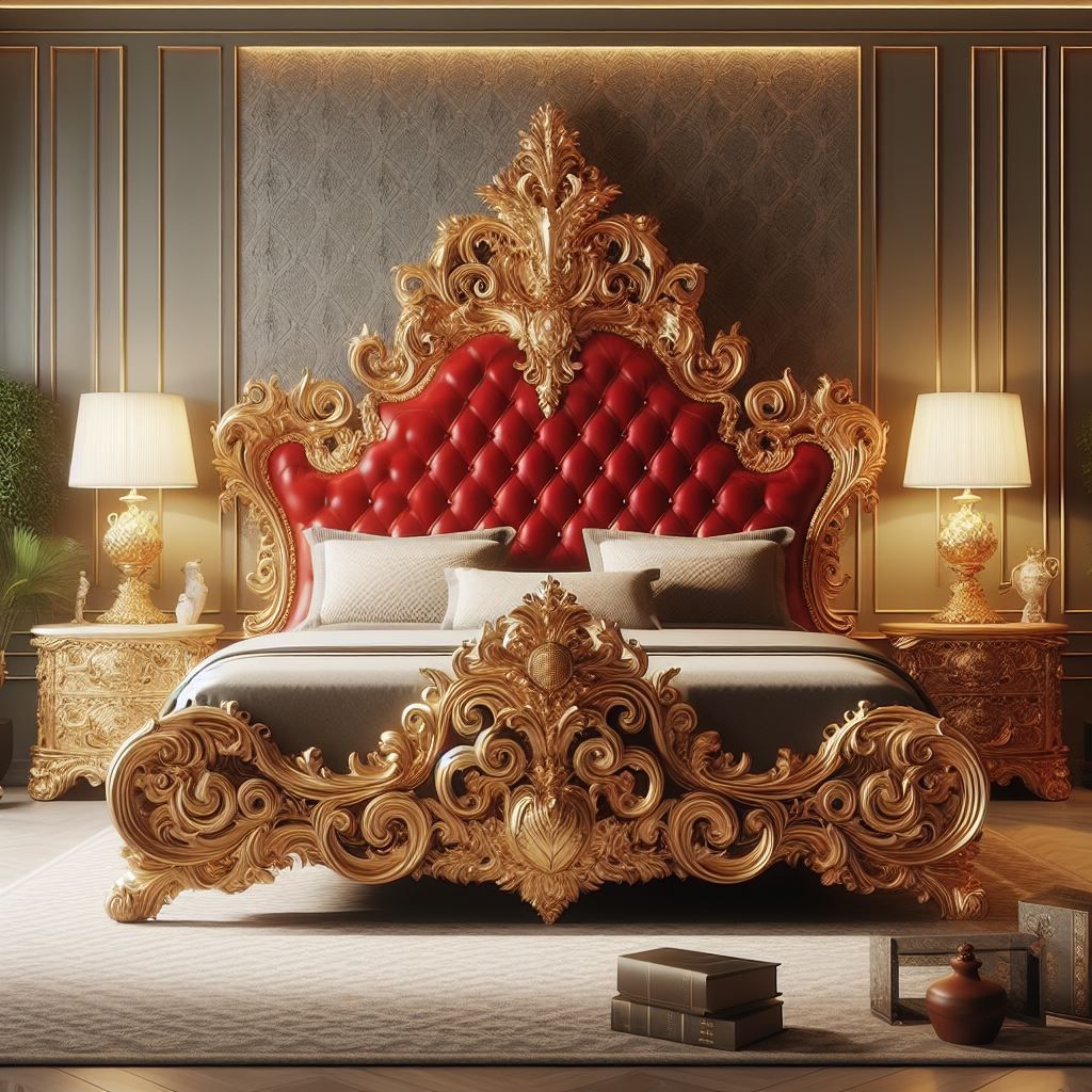 Bộ Giường Phòng Ngủ Tân Cổ Điển Hoàng Gia Vàng Đỏ Đỉnh Cao GTCDBYD037 – BYD Homes
