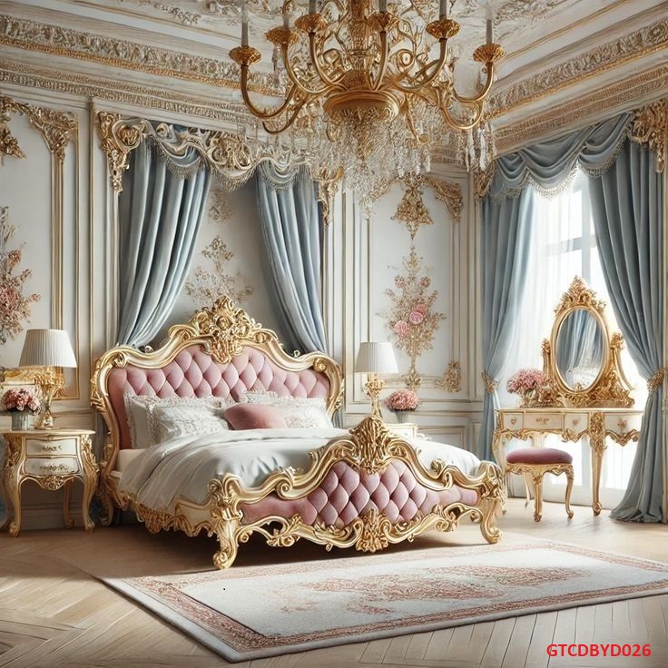 Bộ Giường Phòng Ngủ Tân Cổ Điển Hoàng Gia Vàng Hồng Tinh Tế GTCDBYD026