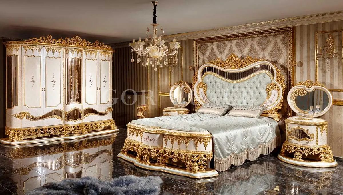 Bộ Giường Phòng Ngủ Tân Cổ Điển Hoàng Gia Vàng Trắng Cổ Điển GTCDBYD015