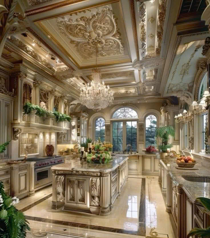 Tủ Bếp Tân Cổ Điển Hoàng Gia Trắng Vàng Xanh Tươi TBTCDBYD021